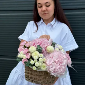 Все филиалыКорзина с гортензией и хризантемой на фото размер М